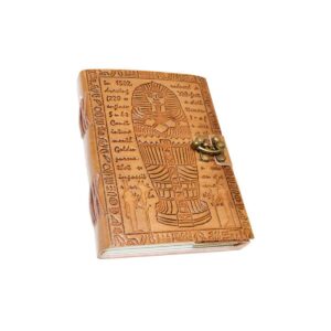 Let the ancient wisdom of the turtle help inspire you throughout the pages of this leather journal. An image of turtle with a detailed framing adorn the cover, while a symbolic image of an earthly landscape is on the back. Metal latch closure on this tan leather journal with an aged finish. 5″ x 7″…