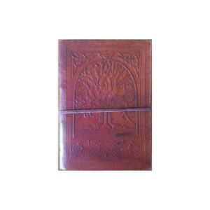 The hardbound Celtic Tree Journal folds over itself upon its front face, sealing closed magnetically with its seam mirror the wavy trunk of the Celtic tree of life design it displays. Measures 5″ x 7″ 120 pages – Unlined.