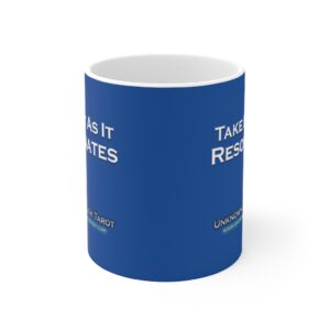 Warm your soul with a nice cuppa out of this perfectly sized ceramic mug. Customized with a cool Unknown Truth Tarot “Take It As It Resonates” logo to make that “aaahhh!” moment even better. It’s microwave safe and dishwasher safe and made of white, durable ceramic in an 11-ounce size. It’s high-quality sublimation printing makes…