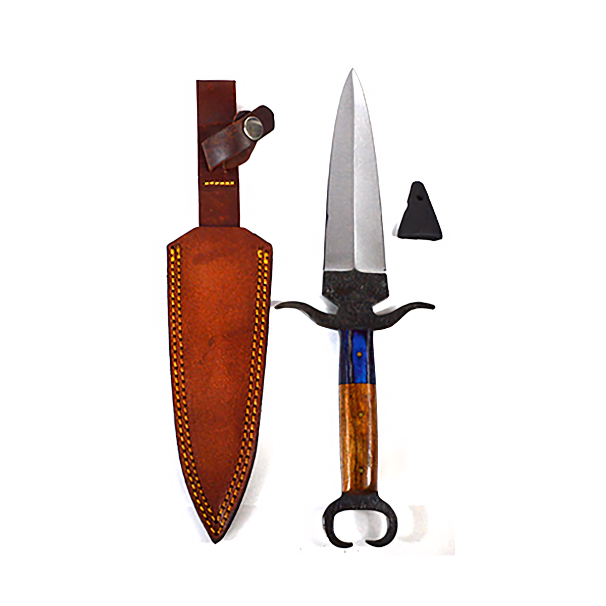 - Handle: wooden hilt with visible natural grain and added color; each piece is visually unique