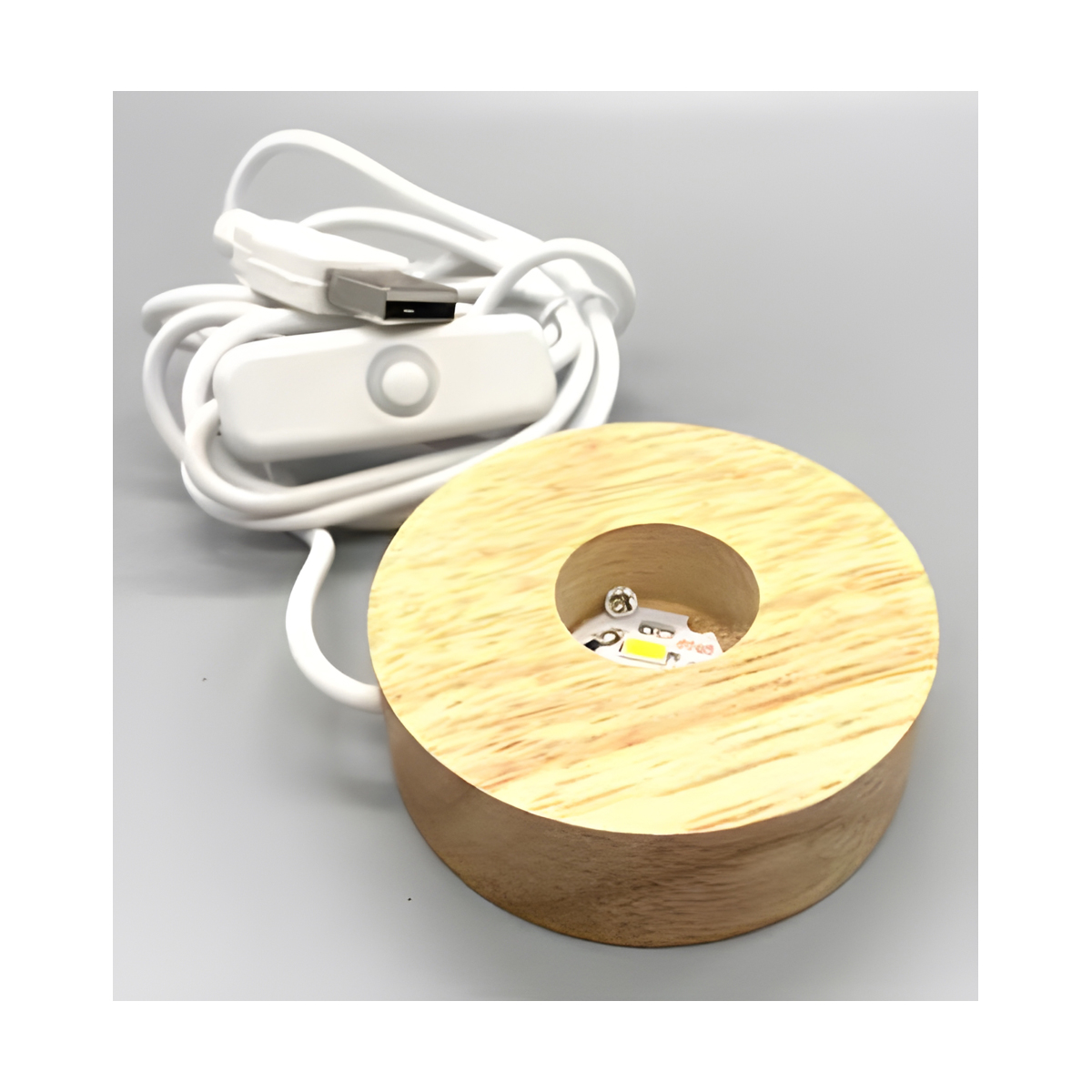 This is a wooden base with a built-in white LED. That’s it — and that’s the point. White light doesn’t compete with the natural colors of your transparent item; it exposes them. Instead of washing everything in color, this LED display stand lets the object itself do the talking while the light simply makes the details harder to ignore.