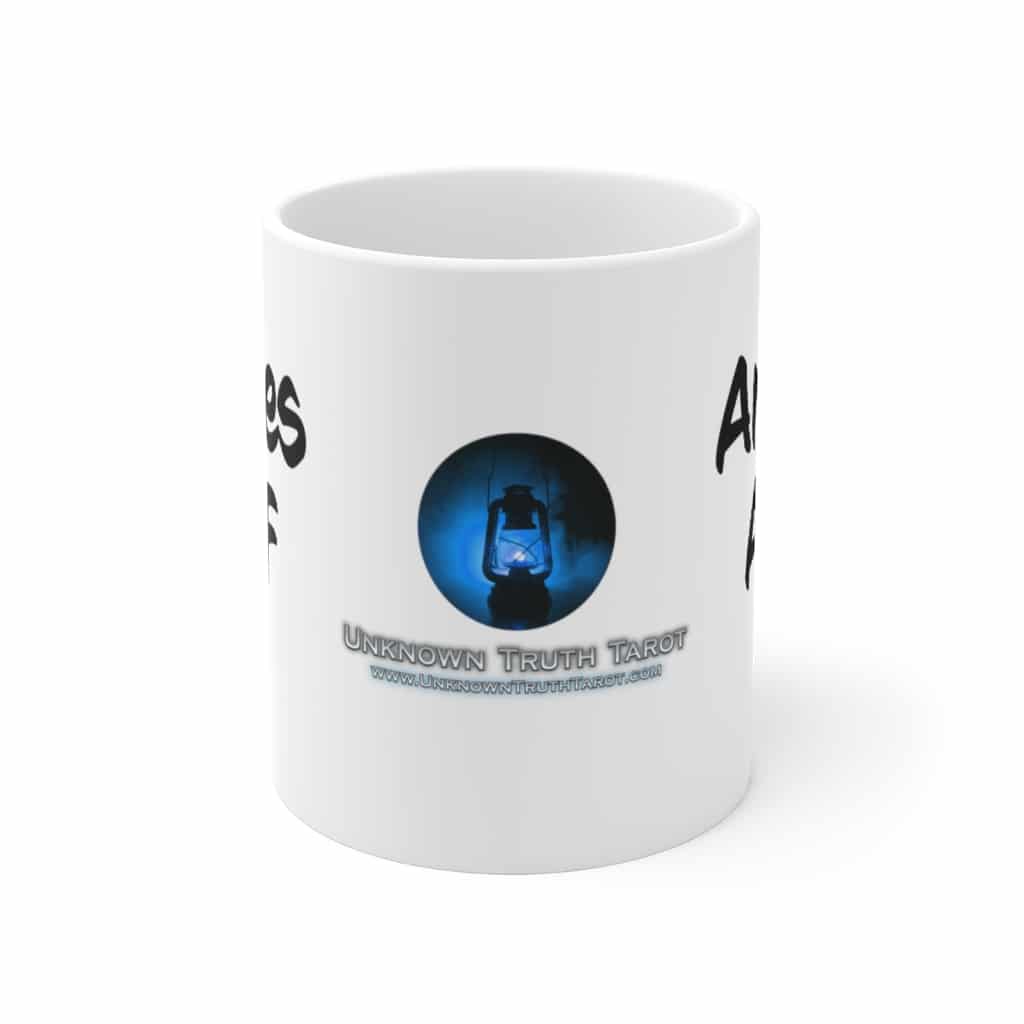 Let ’em know exactly how Aries you really are with this awesome “Aries AF” official Unknown Truth Tarot 11oz ceramic mug.