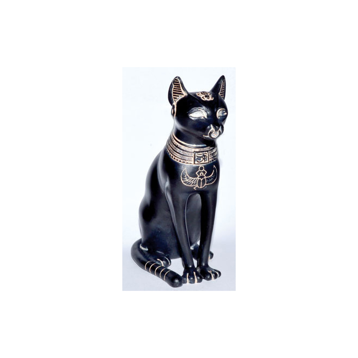 An exquisite statue of Bastet in her cat form. Simple elegant lines with fine details and decorations picked out in enamel. Cold Cast Resin. 2 1/2″ x 3 1/2″ x 5 1/2″