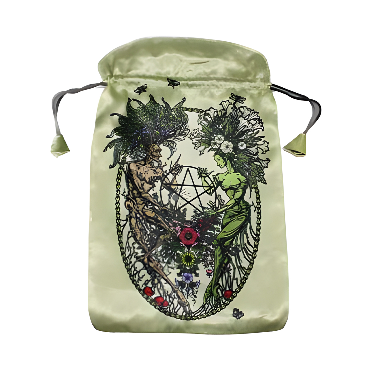 Stay clear on the hierarchy: this is a fabric tarot bag with printed art and a drawstring; it marks the boundary for your tools, but you are the one who decides what goes in, when it opens, and how seriously you treat the routine around it — you hold the leash, the bag just draws the line.