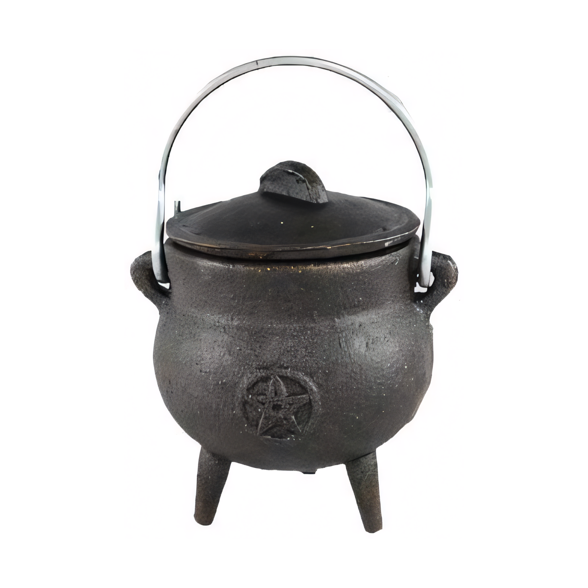 This piece is cast iron with an embossed pentagram on the body. The metal holds heat well and stands up to repeated use, which makes it a reliable container for anything that burns, smolders, or needs to be symbolically “cooked down.” The symbol doesn’t do the work for you; it simply gives your mind a clear visual anchor for your intention.