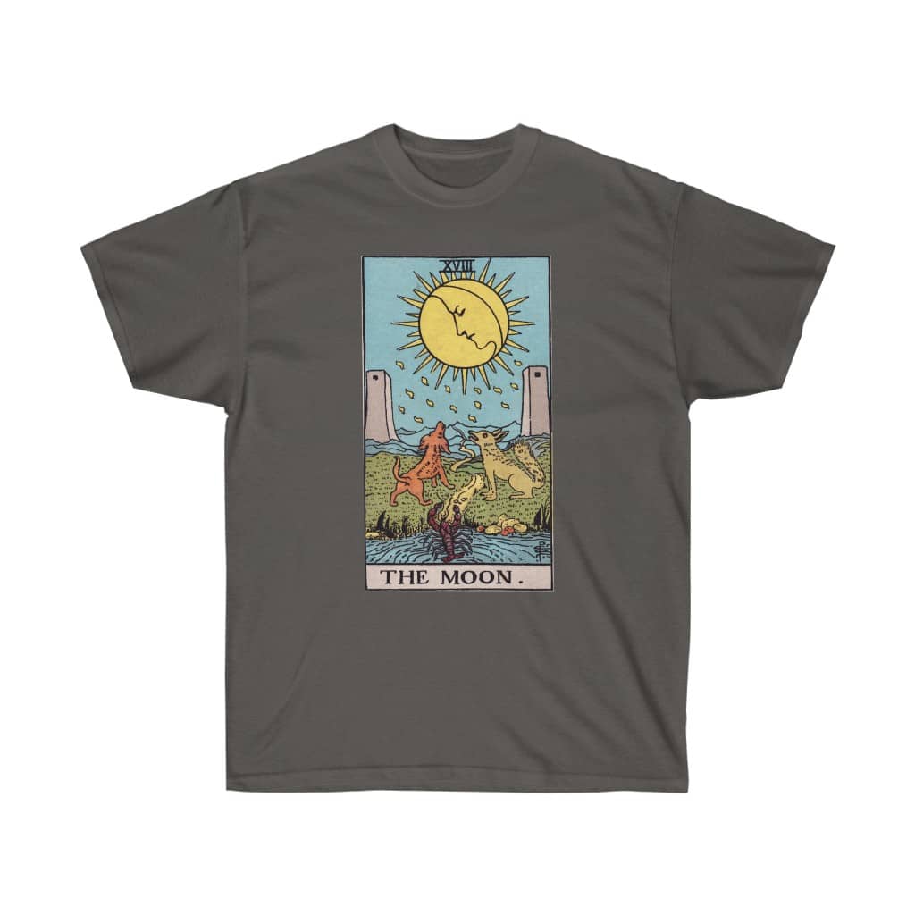 Part of our “Major Arcana Collection”, this unisex ultra cotton tee features The Moon, Card 18 of the Rider-Waite Tarot Deck’s Major Arcana.